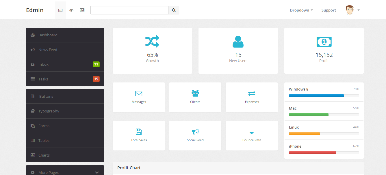На сколько я знаю, найти готовый UI-дизайн интерфейса очень сложно. А тут случайно нашел сайт на котором есть готовые админ панели, причем адаптивные.